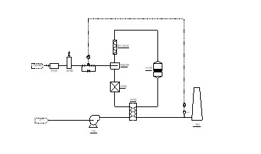 SCR廢氣脫硫裝置的工藝流程如圖1所示,主要由氨氣供應(yīng)系統(tǒng)、氨氣控制系統(tǒng)、催化劑、排氣系統(tǒng)、預(yù)熱系統(tǒng)和反應(yīng)器等組成。液氨由槽車運送到液氨儲罐,液氨儲槽輸出的液氨在蒸發(fā)器內(nèi)蒸發(fā)為氨氣,并將氨氣加熱到常溫后,送到氨氣緩沖罐備用。氨氣緩沖罐的氨氣經(jīng)調(diào)壓閥減壓后,通過噴氨格柵的噴嘴噴入廢氣中與廢氣混合,再經(jīng)靜態(tài)混合器充分混合后進入催化反應(yīng)器。當(dāng)廢氣溫度低時,預(yù)熱系統(tǒng)用來加熱廢氣。達到反應(yīng)溫度且與氨氣充分混合的廢氣流經(jīng)SCR反應(yīng)器的催化層時,氨氣與NOx發(fā)生催化氧化還原反應(yīng),將NOx還原為無害的N2和H2O。
